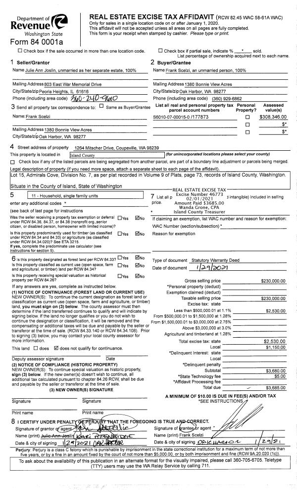 | 3 | 01/29/2021 | WD | Warranty Deed | JOSLIN, JULIE ANN | SCELZI, FRANK | | | $230,000.00 | 46773 | 4509648 |