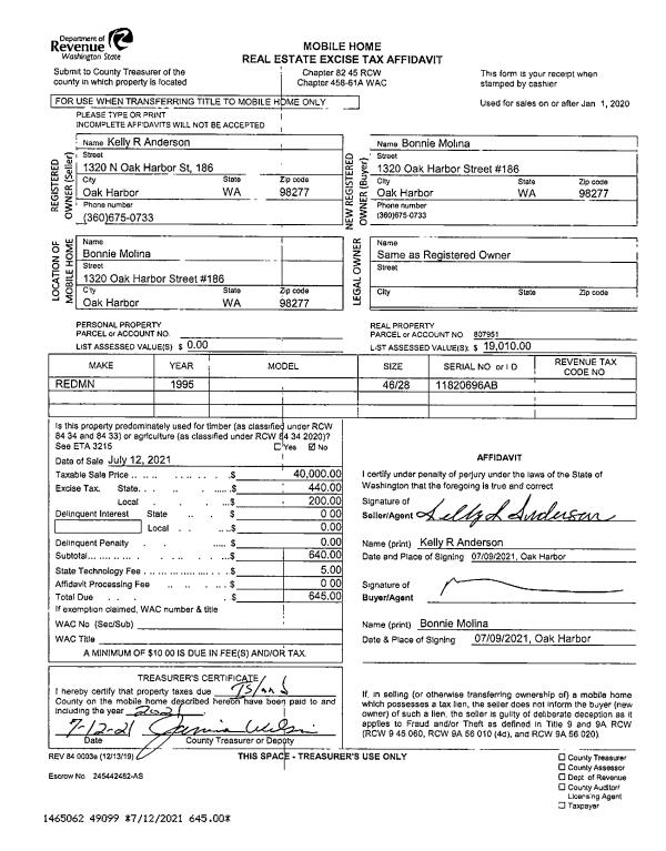 | Mailing Address: | 600 NW ALEXANDER STREET COUPEVILLE, WA 98239 | % Ownership: | 100.0000000000% |