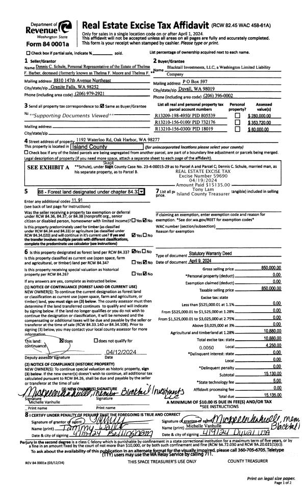 | 1 | 04/09/2024 | WD | Warranty Deed | MOORE, THELMA F | BLACKTAIL INVESTMENTS, LLC | | | $850,000.00 | 59690 | 4571405 |