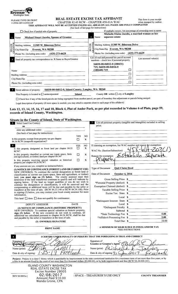 | 1 | 10/04/2016 | ESTSEPPROP | Establish Separate Property | JACOBS, MICHELLE ELAINE | JACOBS, MICHELLE ELAINE | | | $0.00 | 28005 | 4416686 |