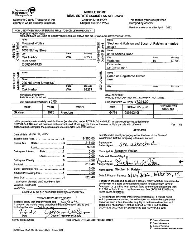 | Mailing Address: | TRACY L. ANIELSKI TTEE 3008 SW SCENIC HEIGHTS ST OAK HARBOR, WA 98277 | % Ownership: | 100.0000000000% |