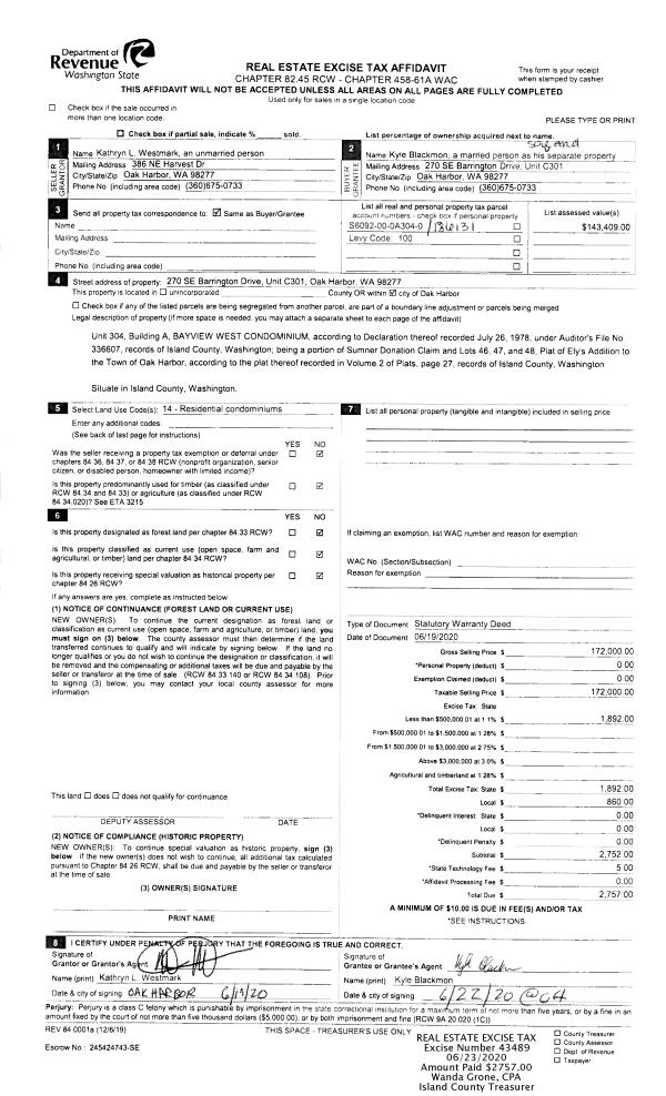 | 6 | 06/19/2020 | WD | Warranty Deed | WESTMARK, KATHRYN | BLACKMON, KYLE | | | $172,000.00 | 43489 | 4489536 |