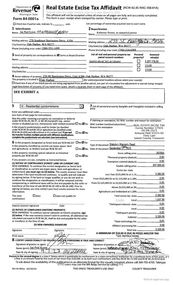 | 1 | 09/07/2023 | WD | Warranty Deed | KOREN, JAN PAUL | STORMS, KATHERINE | | | $207,500.00 | 57926 | 4564484 |
