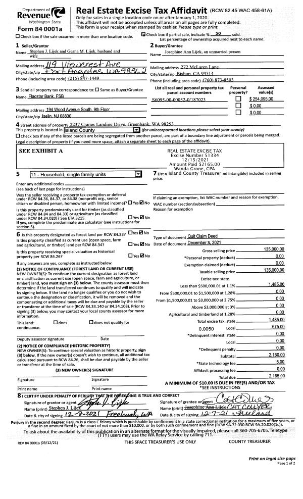 | 1 | 12/03/2021 | QCD | Quit Claim Deed | LIJEK, STEPHEN J | LIJEK, JOSEPHINE ANN | | | $135,000.00 | 51334 | 4535998 |