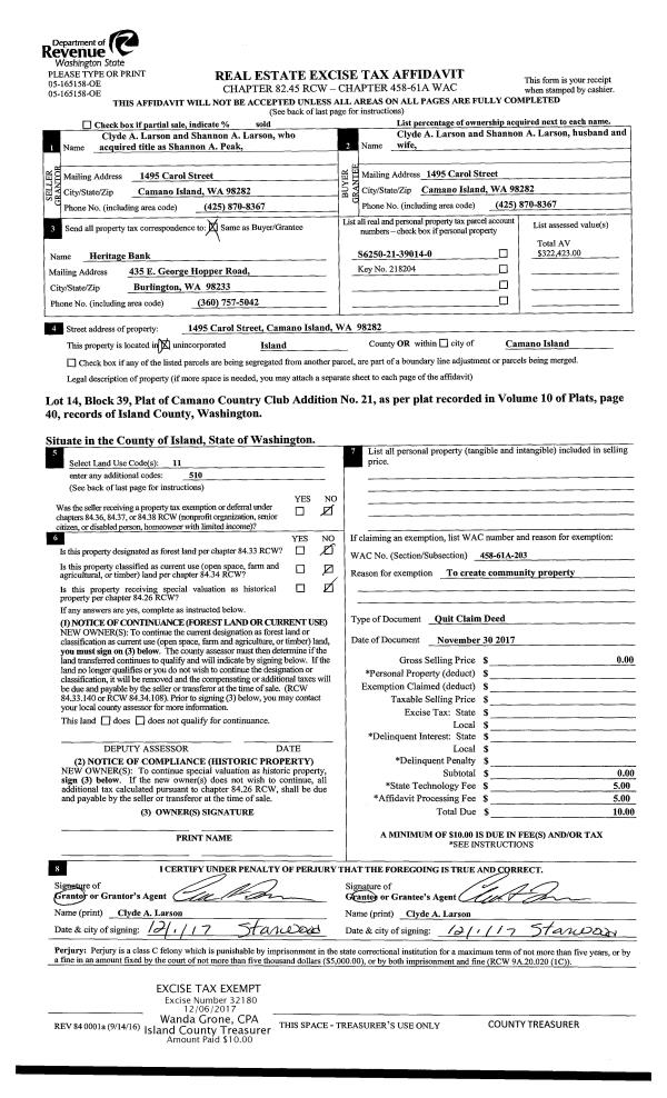 | Mailing Address: | TAMMY J DEPTULA 960 CHICKADEE DR GREENBANK, WA 98253 | % Ownership: | 100.0000000000% |
