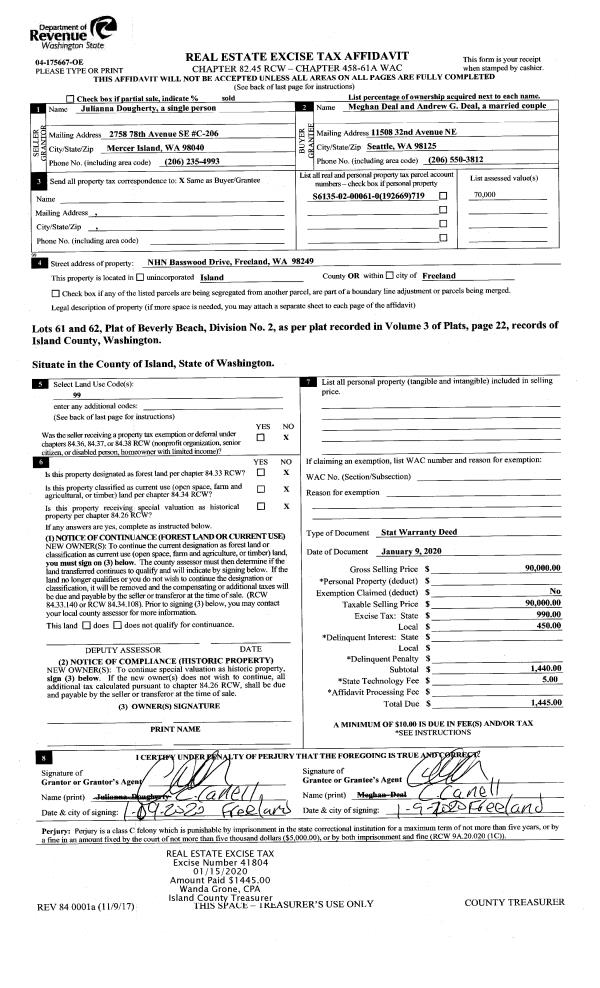 | 1 | 01/09/2020 | WD | Warranty Deed | DOUGHERTY, JULIANNA | DEAL, MEGHAN | | | $90,000.00 | 41804 | 4479330 |