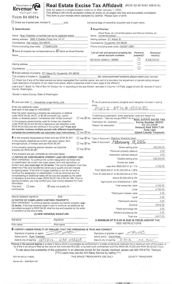 | Mailing Address: | 371 MAYER ST COUPEVILLE, WA 98239-4304 | % Ownership: | 100.0000000000% |