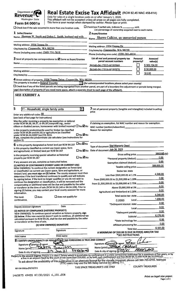 | 1 | 07/26/2021 | WD | Warranty Deed | SMITH, SHERMAN | CALKINS, SHAWN | | | $386,000.00 | 49455 | 4525917 |