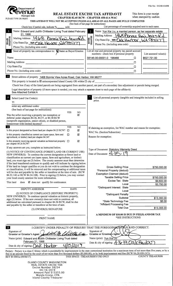 | 5 | 04/26/2019 | WD | Warranty Deed | CHITTESTER TRUSTEE, EDWARD | LIU, YUN XIA | | | $750,000.00 | 38234 | 4462151 |