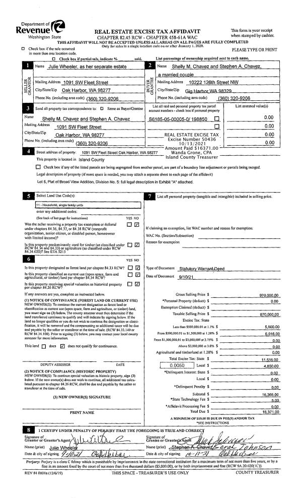| Mailing Address: | STEPHEN A CHAVEZ 1091 SW FLEET ST OAK HARBOR, WA 98277 | % Ownership: | 100.0000000000% |
