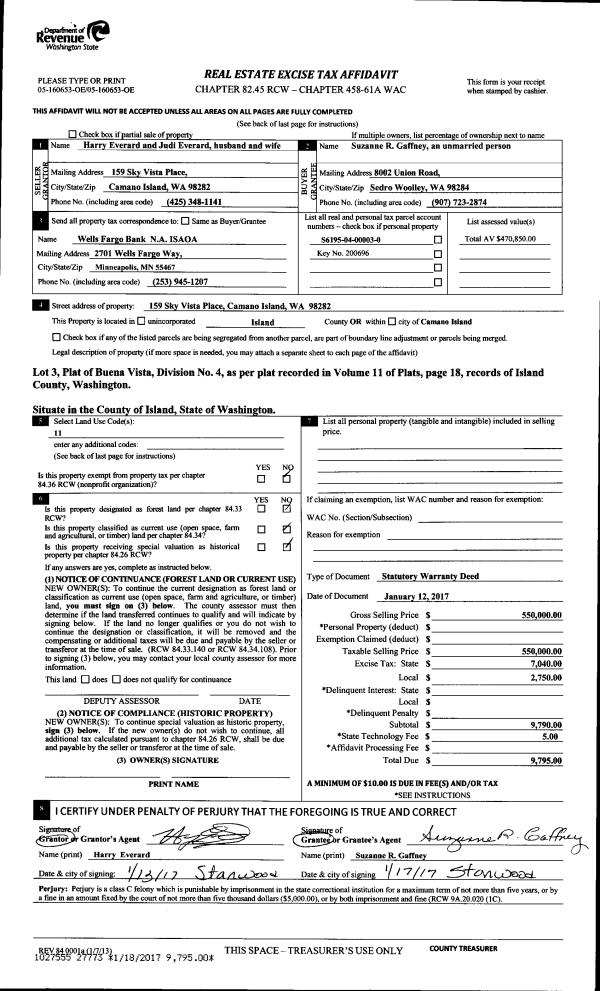 | 2 | 01/12/2017 | WD | Warranty Deed | EVERARD, HARRY | GAFFNEY, SUZANNE R | | | $550,000.00 | 27773 | 4415370 |
