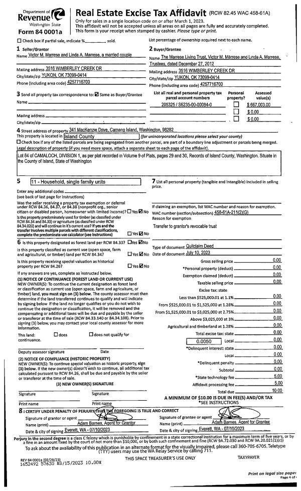 | 1 | 07/10/2023 | QCD | Quit Claim Deed | MARRESE, VICTOR M | MARRESE TTEE, VICTOR M | | | $0.00 | 57630 | 4563534 |