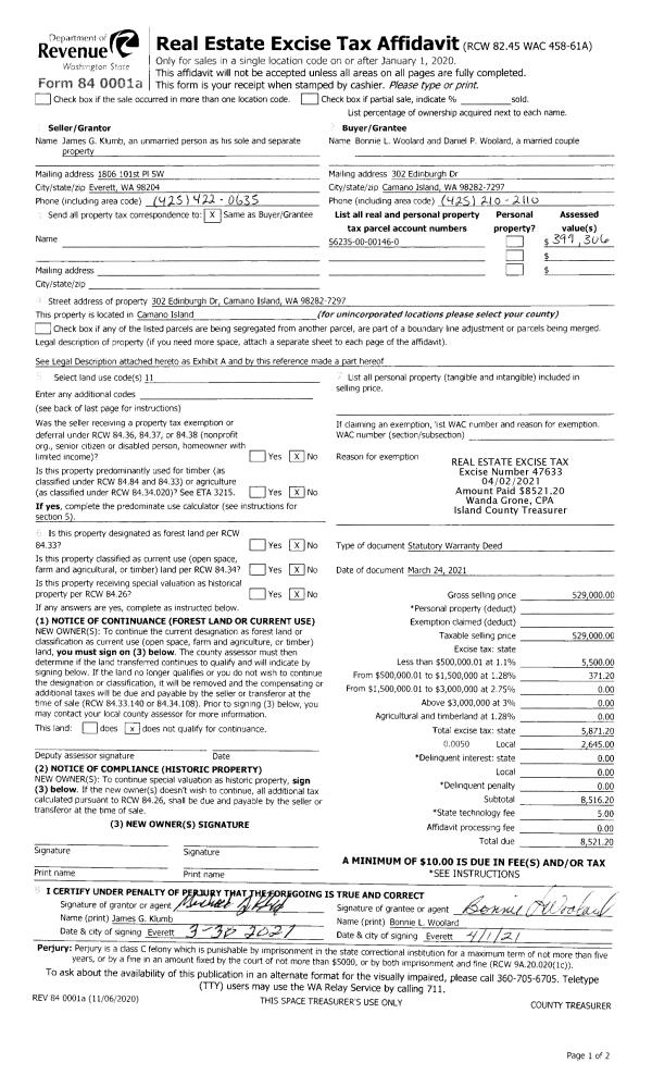 | 2 | 03/24/2021 | WD | Warranty Deed | KLUMB, JAMES G | WOOLARD, BONNIE L | | | $529,000.00 | 47633 | 4515473 |