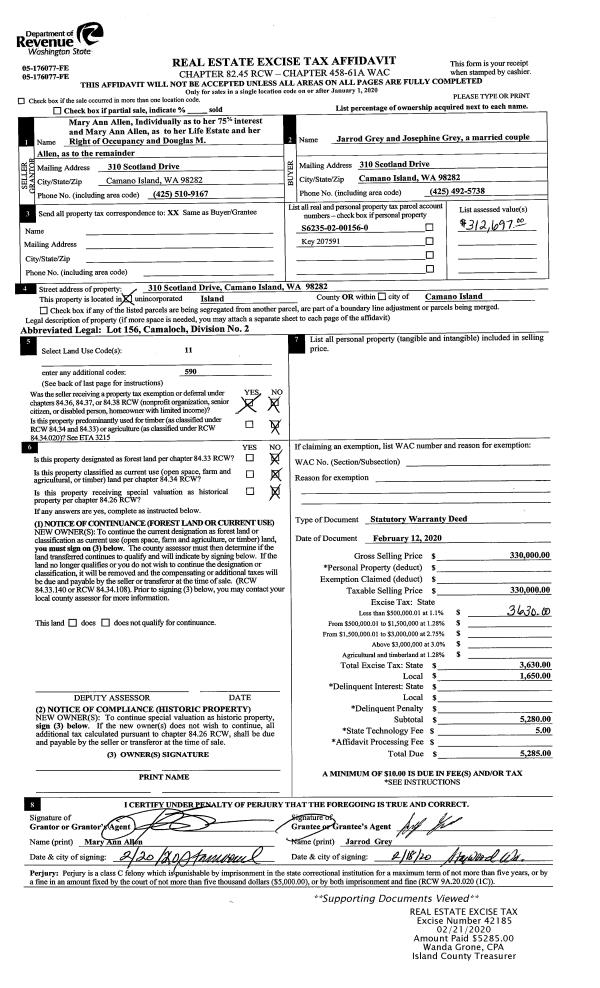 | 1 | 02/12/2020 | WD | Warranty Deed | ALLEN, MARY ANN | GREY, JARROD | | | $330,000.00 | 42185 | 4481707 |