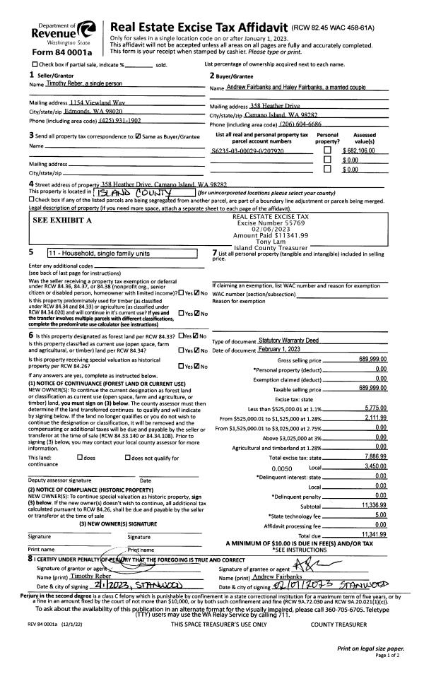 | 1 | 02/01/2023 | WD | Warranty Deed | REBER, TIMOTHY | FAIRBANKS, ANDREW | | | $689,999.00 | 55769 | 4556403 |
