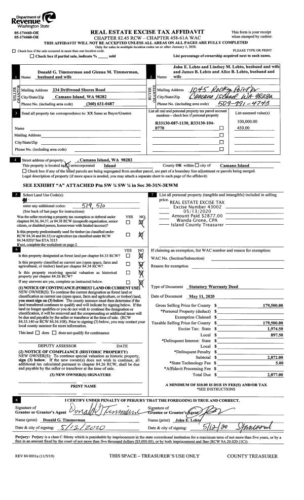 | 8 | 03/01/1983 | REC | Real Estate Contract | STONE, CLARENCE L | IRISH, DAVE | | | $9,000.00 | 30914 | 408194 |