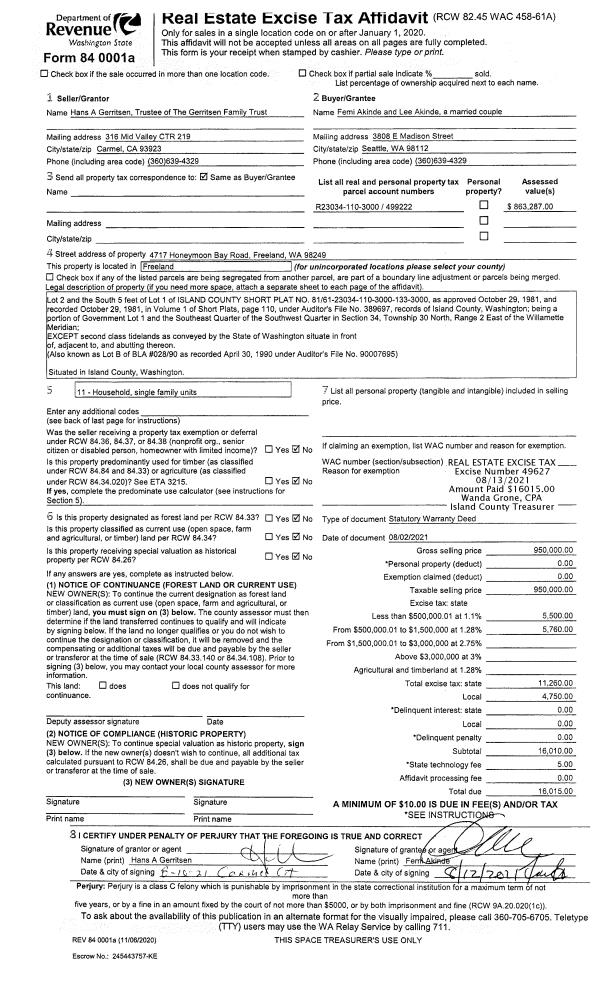 | 1 | 08/12/2021 | WD | Warranty Deed | WAISANEN, LORI DIANE | WAISENEN, JON LEE | | | $0.00 | 49645 | 4526920 |