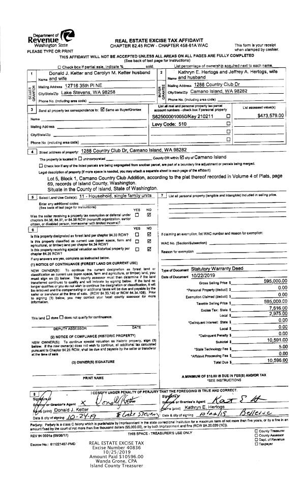 | 1 | 10/22/2019 | WD | Warranty Deed | KETTER, DONALD J | HERTOGS, KATHRYN E | | | $595,000.00 | 40836 | 4474099 |