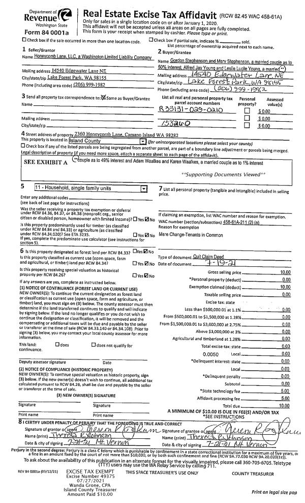 | Mailing Address: | MARILYN E MARSH 370 NE CAMANO DR SUIT 5-453 CAMANO ISLAND, WA 98282 | % Ownership: | 100.0000000000% |