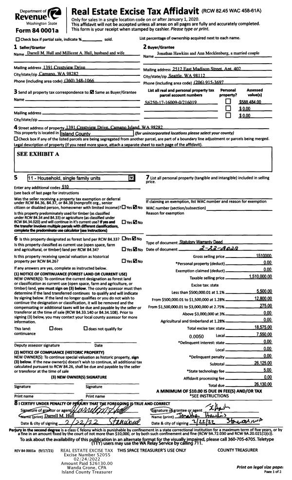 | 1 | 02/22/2022 | WD | Warranty Deed | HULL, DARRELL M | HAWKINS, JONATHAN | | | $1,510,000.00 | 52055 | 4540276 |