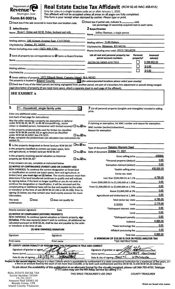 | 2 | 10/11/2021 | WD | Warranty Deed | DOLAN, RYAN C | HARTMAN, JEFFREY | | | $435,000.00 | 50564 | 4531848 |