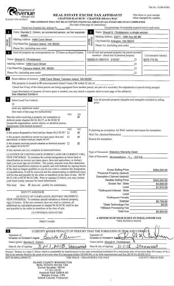 | 2 | 11/01/2018 | WD | Warranty Deed | GRIMM, BERNITA E | CHRISTIANSON, SHERYLL K | | | $382,000.00 | 36541 | 4454545 |
