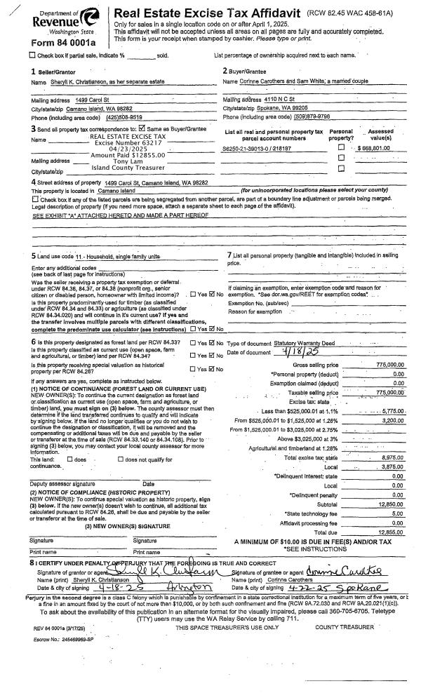 | 1 | 04/18/2025 | WD | Warranty Deed | CHRISTIANSON, SHERYLL K | CAROTHERS, CORINNE | | | $775,000.00 | 63217 | 4584852 |