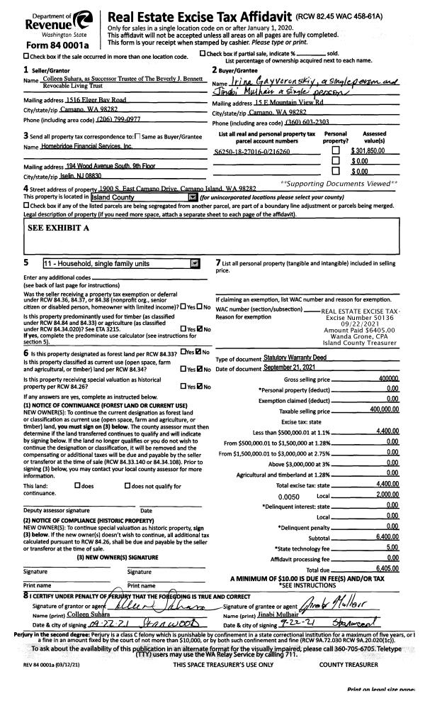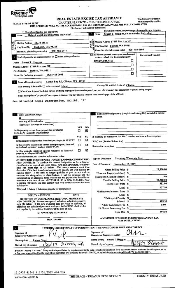 | Mailing Address: | 1872 LAKE DR CAMANO ISLAND, WA 98282 | % Ownership: | 100.0000000000% |