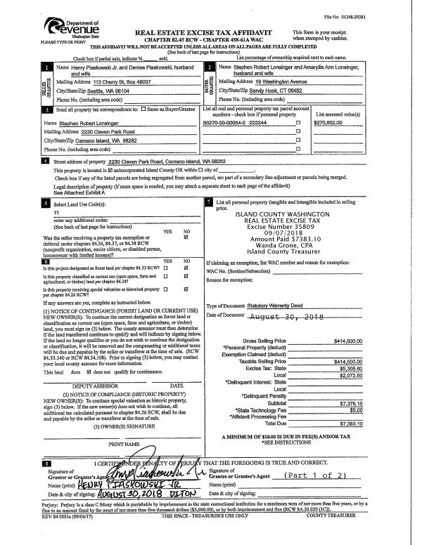 | 3 | 08/30/2018 | WD | Warranty Deed | PIASKOWSKI JR, HENERY | LONSINGER, STEPHEN ROBERT | | | $414,500.00 | 35809 | 4451338 |