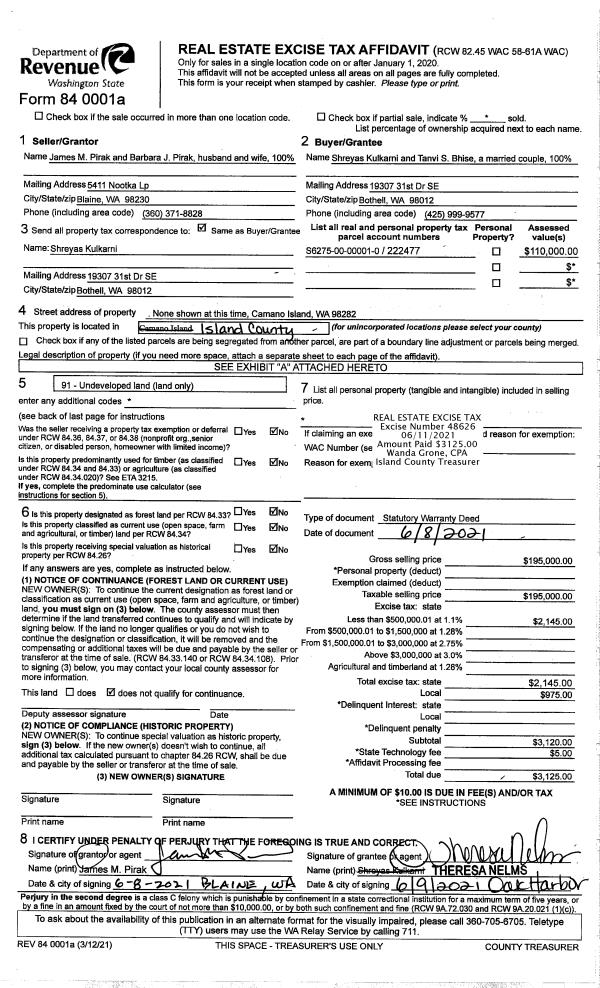 | 2 | 06/08/2021 | WD | Warranty Deed | PIRAK, JAMES M | KULKARNI, SHREYAS | | | $195,000.00 | 48626 | 4512574 |