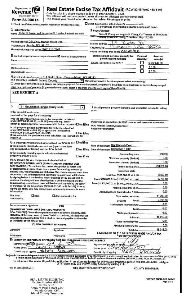 | 1 | 09/01/2021 | WD | Warranty Deed | LOADER, COLIN G | CHANG, STEVE S | | | $950,000.00 | 49919 | 4528451 |