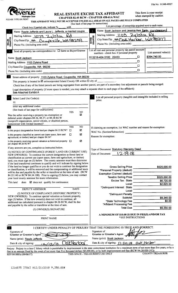 | 1 | 12/19/2018 | WD | Warranty Deed | JEFFERDS, RAWLE | JACKSON, SCOTT | | | $525,000.00 | 37063 | 4456917 |