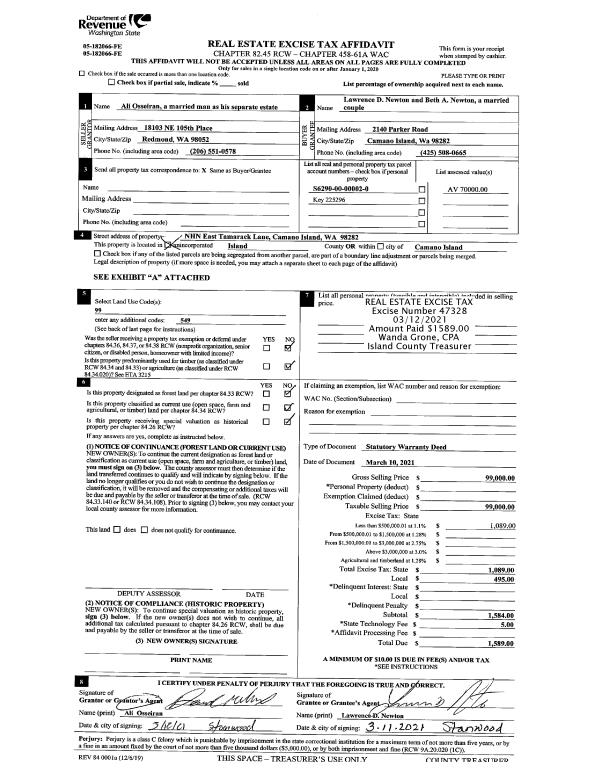 | Mailing Address: | 1834 TAMARACK LN 32716 CAMANO ISLAND, WA 98282 | % Ownership: | 100.0000000000% |