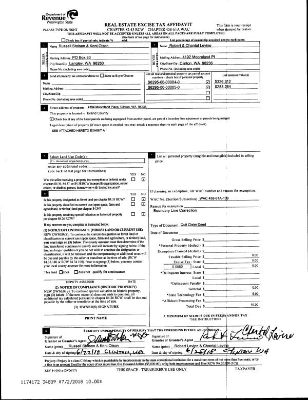 | 1 | 06/22/2018 | QCD | Quit Claim Deed | STOLSEN, J RUSSELL | LEVINE, ROBERT L | | | $0.00 | 34809 | 4447275 |