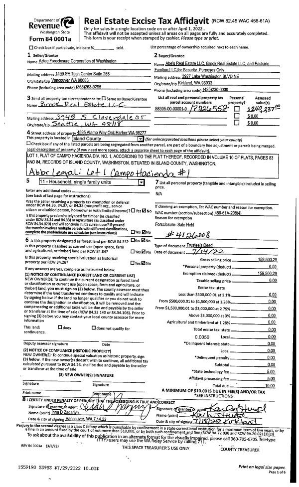 | 3 | 07/14/2022 | TRUSTEED | Trustee's Deed | AZTEC FORECLOSURE CORP | ABE'S REAL ESTATE LLC | | | $0.00 | 53953 | 4548901 |