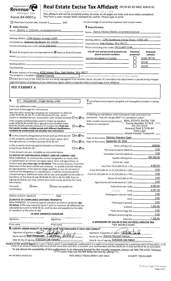 | 1 | 09/30/2024 | WD | Warranty Deed | SIEKMANN, BRADLEY A | HANLON, PATRICK MICHAEL | | | $450,240.00 | 61428 | 4577687 |