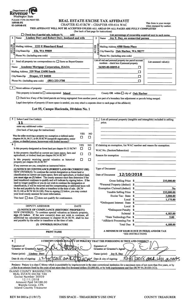 | 1 | 12/10/2018 | WD | Warranty Deed | DORR, ROBERT P | DAY, JOY E | | | $235,000.00 | 36939 | 4456295 |