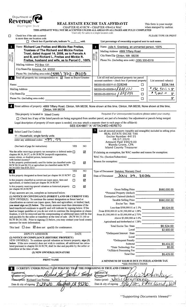 | 1 | 07/29/2020 | WD | Warranty Deed | FREITAS, RICHARD L | GRANBERG, JULIE A | | | $580,000.00 | 44135 | 4493259 |