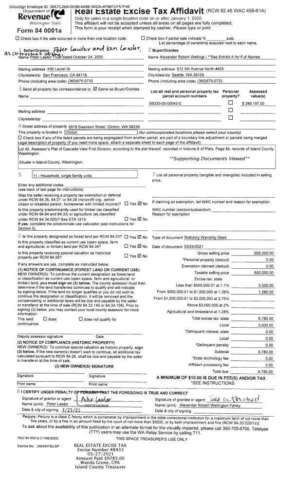 | 1 | 05/24/2021 | WD | Warranty Deed | LAWLOR, PETER | WELLINGTON FAHEY, ALEXANDER ROBERT | | | $600,000.00 | 48433 | 4520410 |