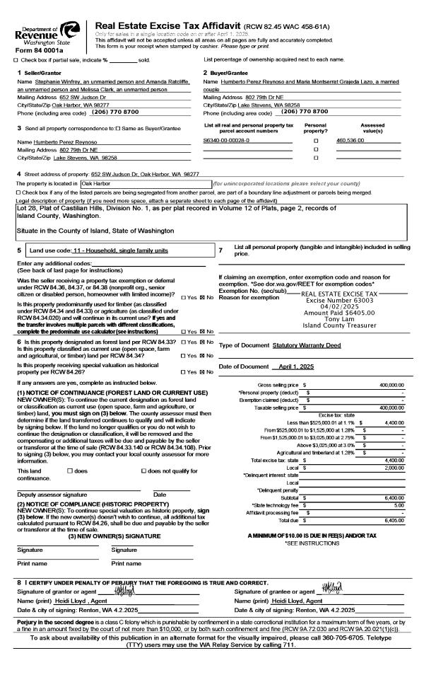 | 2 | 04/01/2025 | WD | Warranty Deed | WINFREY, STEPHANIE | REYNOSO, HUMBERTO PEREZ | | | $400,000.00 | 63003 | 4583970 |