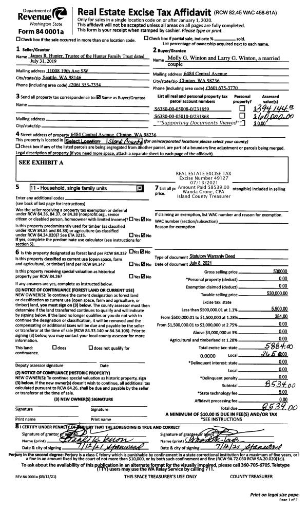 | 1 | 07/08/2021 | WD | Warranty Deed | HUNTER TTEE, JAMES R | WINTON, MOLLY G | | | $530,000.00 | 49127 | 4524186 |