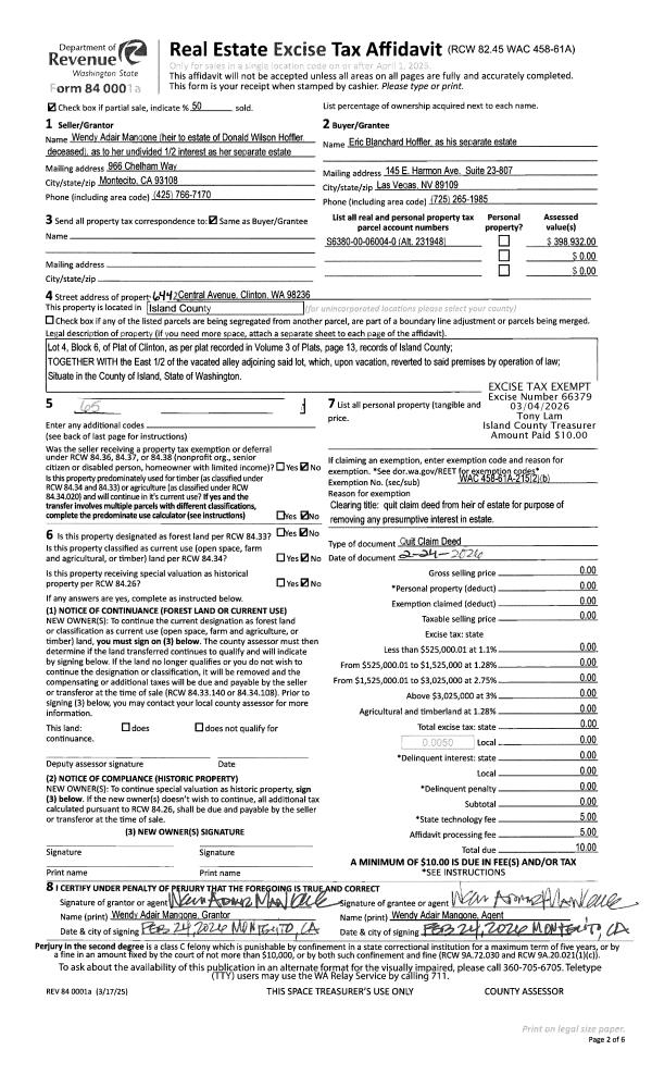 | 1 | 07/14/2025 | WD | Warranty Deed | HOFFLER, DONALD W | MANGONE, WENDY ADAIR | | | $0.00 | 64186 | 4588421 |