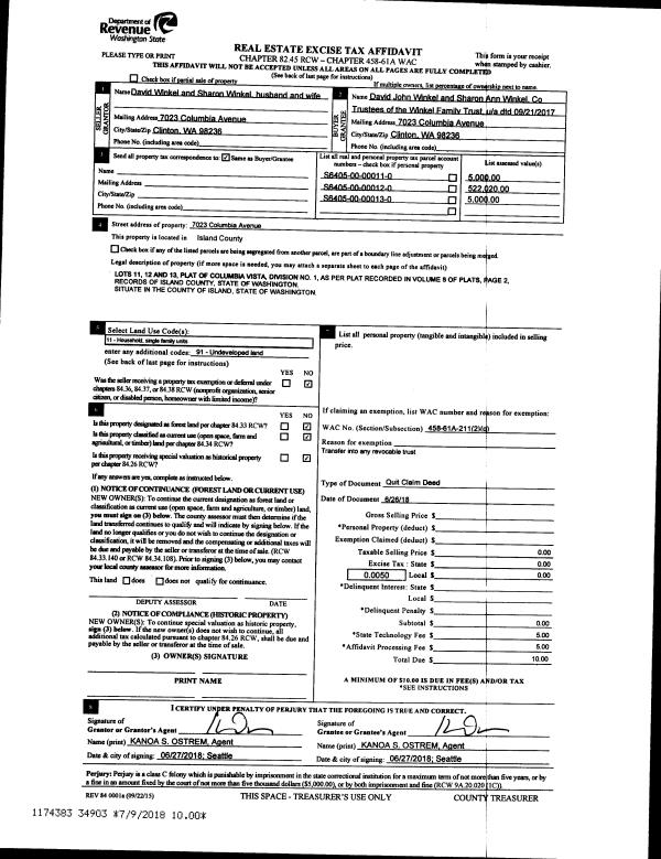 | 1 | 06/26/2018 | QCD | Quit Claim Deed | WINKEL, DAVID | WINKEL CO-TTEE, DAVID JOHN | | | $0.00 | 34903 | 4447571 |
