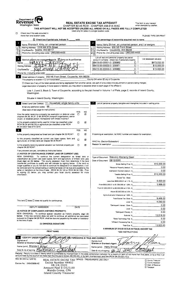 | 2 | 08/12/2020 | WD | Warranty Deed | KIRBY, RHONDA K | SHRIVER, HARRY | | | $810,000.00 | 44402 | 4494662 |