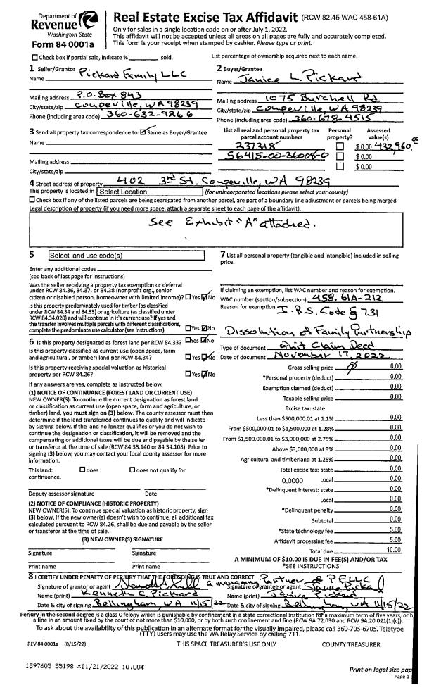| 2 | 11/17/2022 | QCD | Quit Claim Deed | PICKARD FAMILY LLC | PICKARD, JANICE L. | | | $0.00 | 55198 | 4554046 |