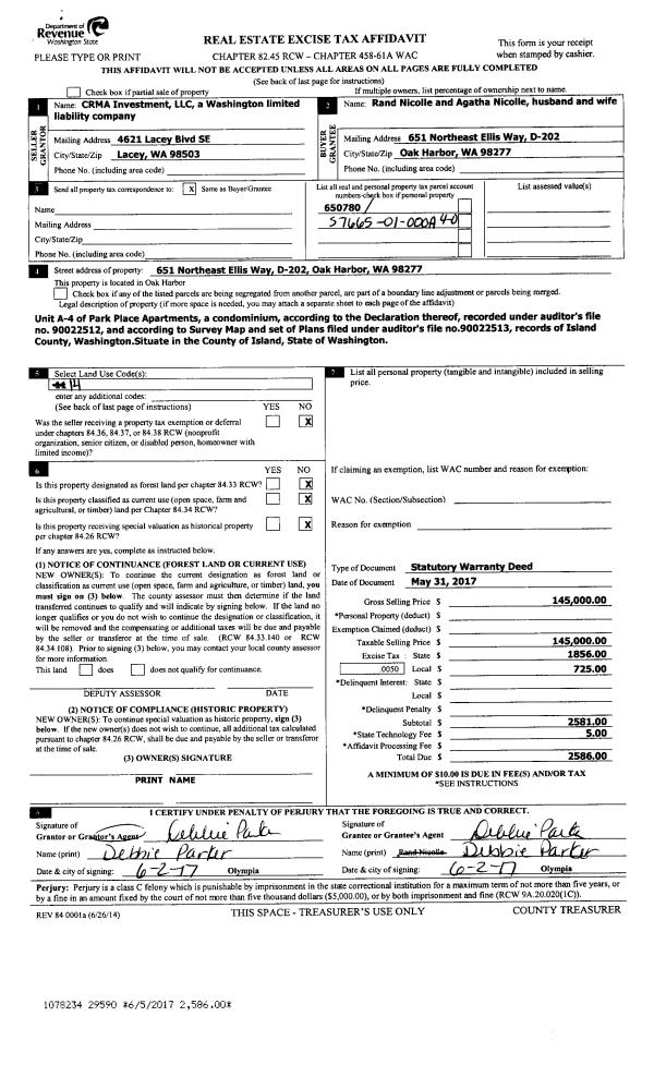 | Mailing Address: | SHERIE WELLS PO BOX 1012 COUPEVILLE, WA 98239 | % Ownership: | 100.0000000000% |