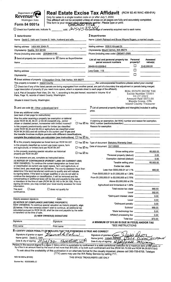 | 1 | 10/11/2022 | WD | Warranty Deed | VELIN, DAVID C | RAINAUD, LIZBETH | | | $60,500.00 | 55001 | 4553114 |