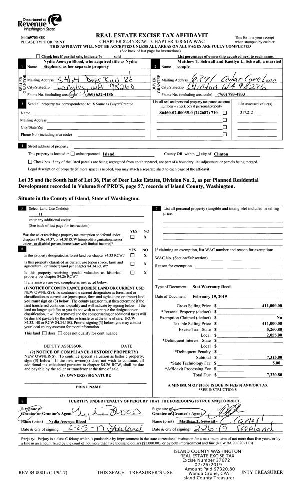 | 1 | 02/19/2019 | WD | Warranty Deed | BLOOD, NYDIA AEOWYN | SCHWALL, MATTHEW T | | | $411,000.00 | 37672 | 4459645 |