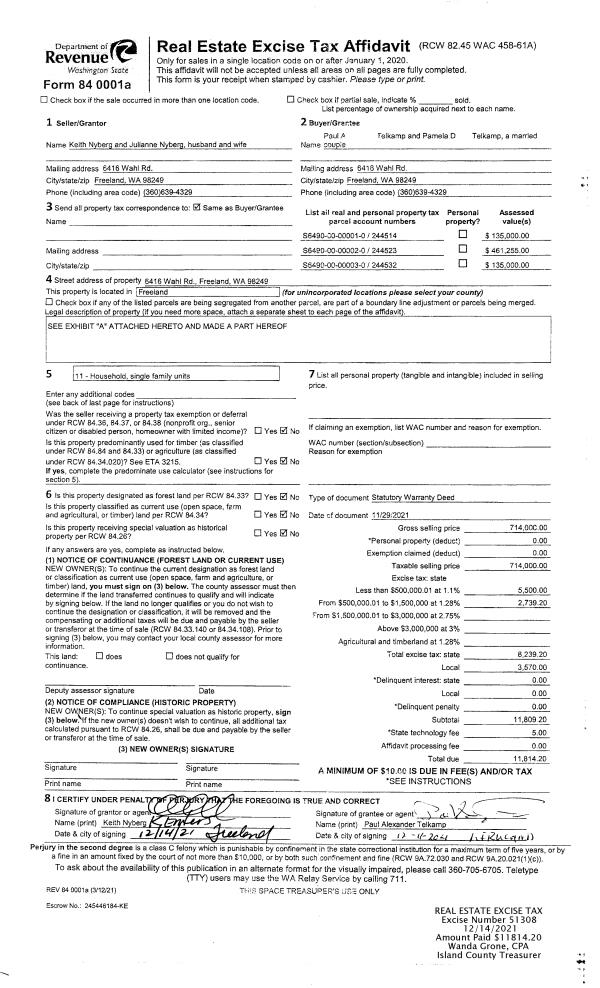 | 1 | 11/29/2021 | WD | Warranty Deed | NYBERG, KEITH R | TELKAMP, PAUL A | | | $714,000.00 | 51308 | 4535842 |