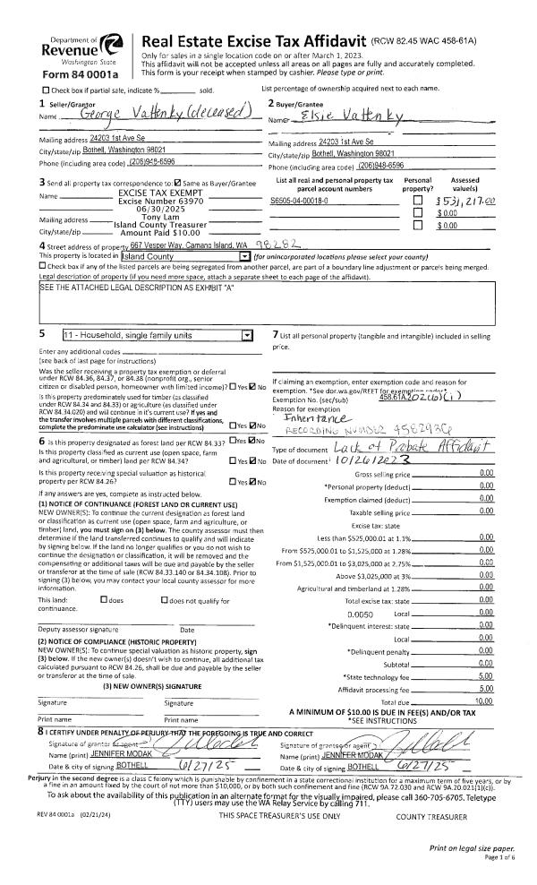 | 3 | 10/26/2023 | LACPROBATE | Lack of Probate | VATTENKY, GEORGE | VATTENKY, ELSIE | | | $0.00 | 63970 | 4582936 |